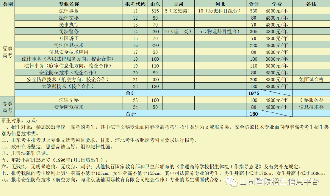 山东司法警官职业学院2021年招生简章