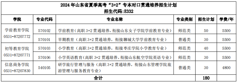 2024年,学前教育专业招收“3+2”专本贯通分段培养考生,衔接本科高校山东女子学院学前教育专业,培养方式按照省教育厅相关政策执行。