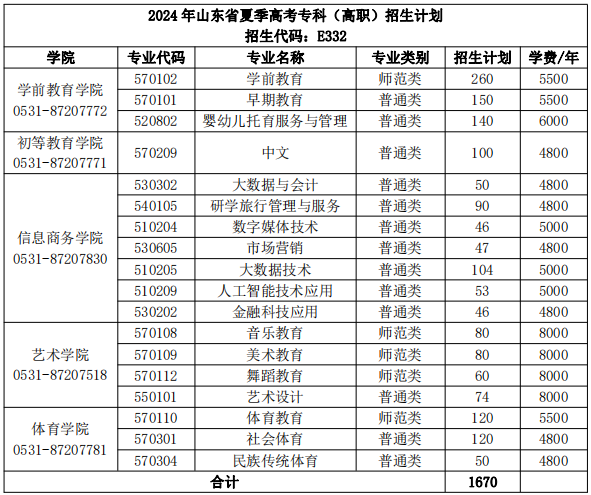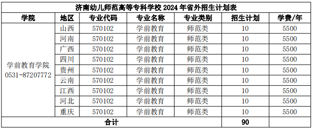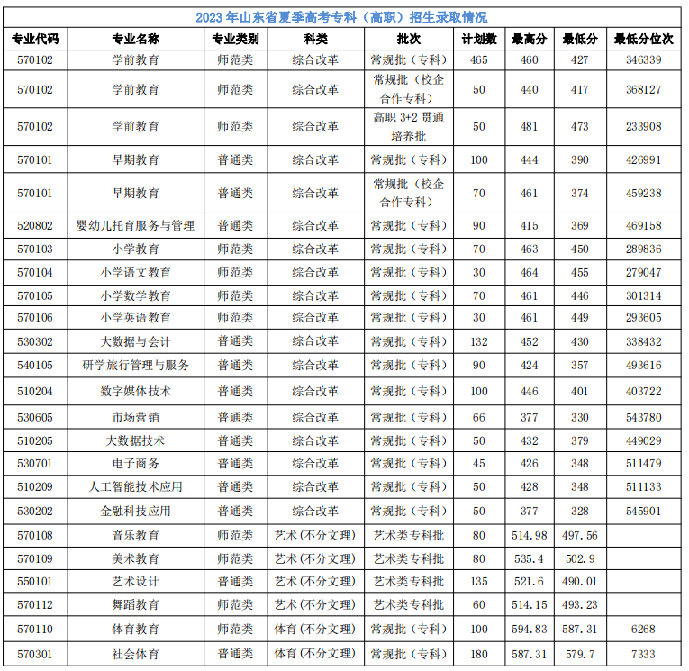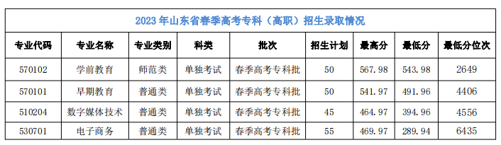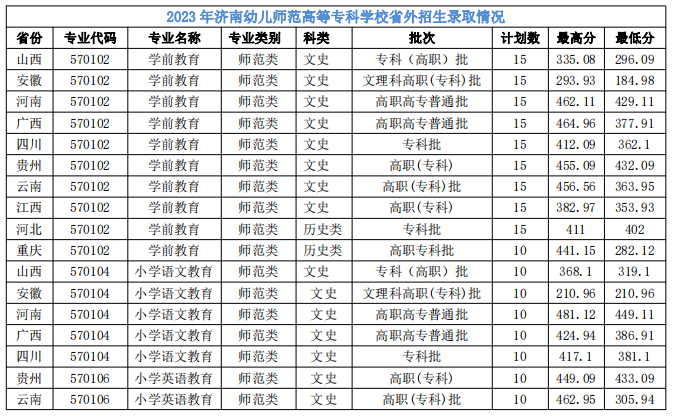 2023年济南幼儿师范高等专科学校省外招生录取情况