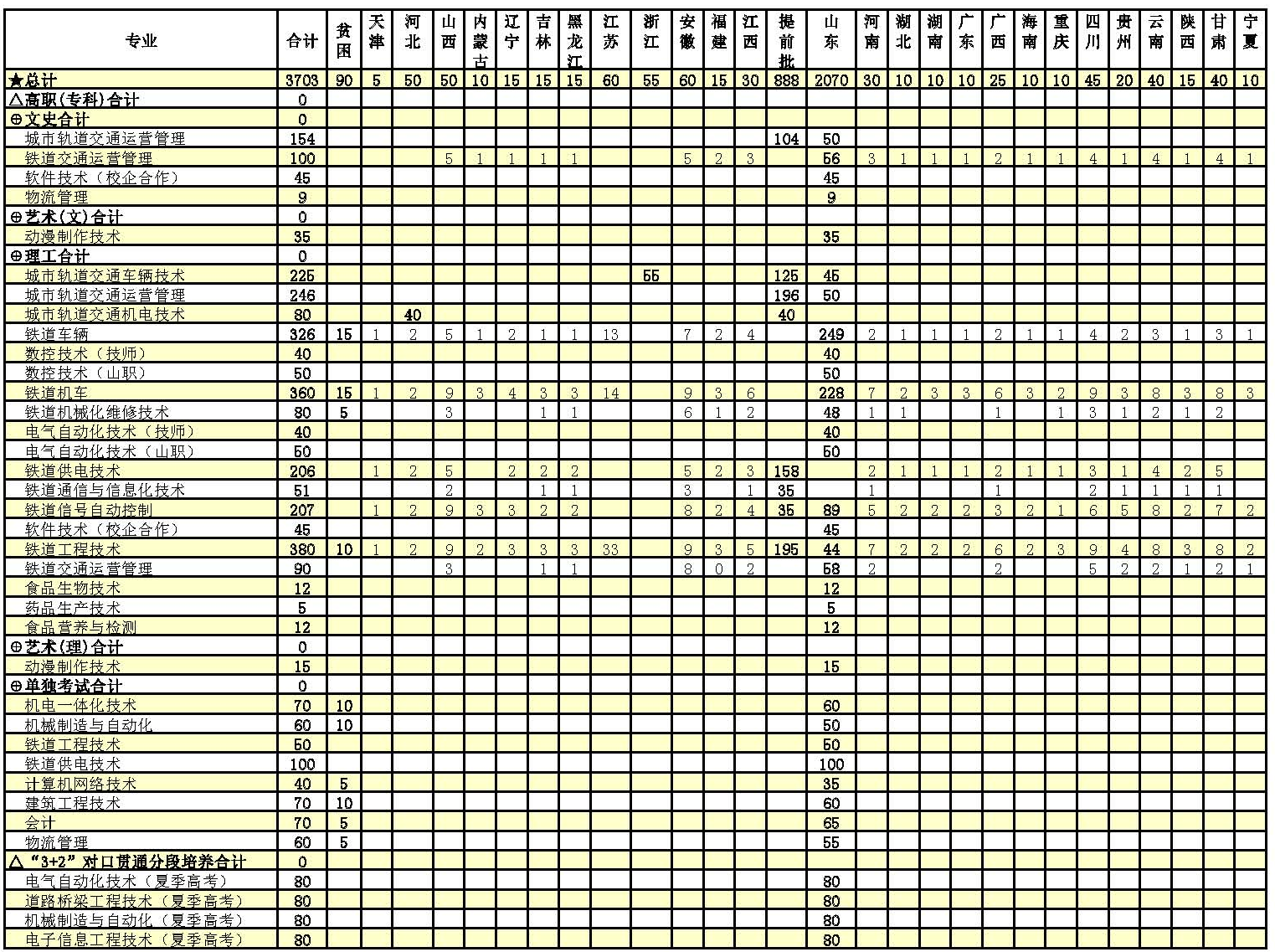 山东职业学院2017年招生计划