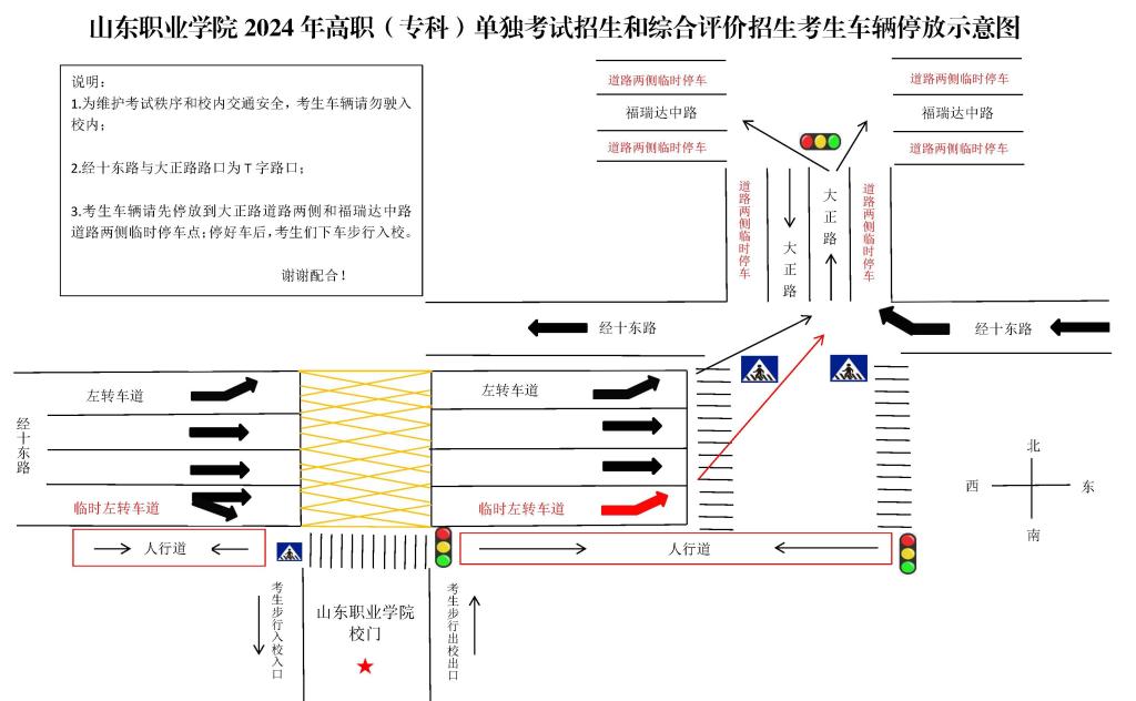 山东职业学院2024年高职(专科)单独考试招生和综合评价招生考生车辆停放示意图