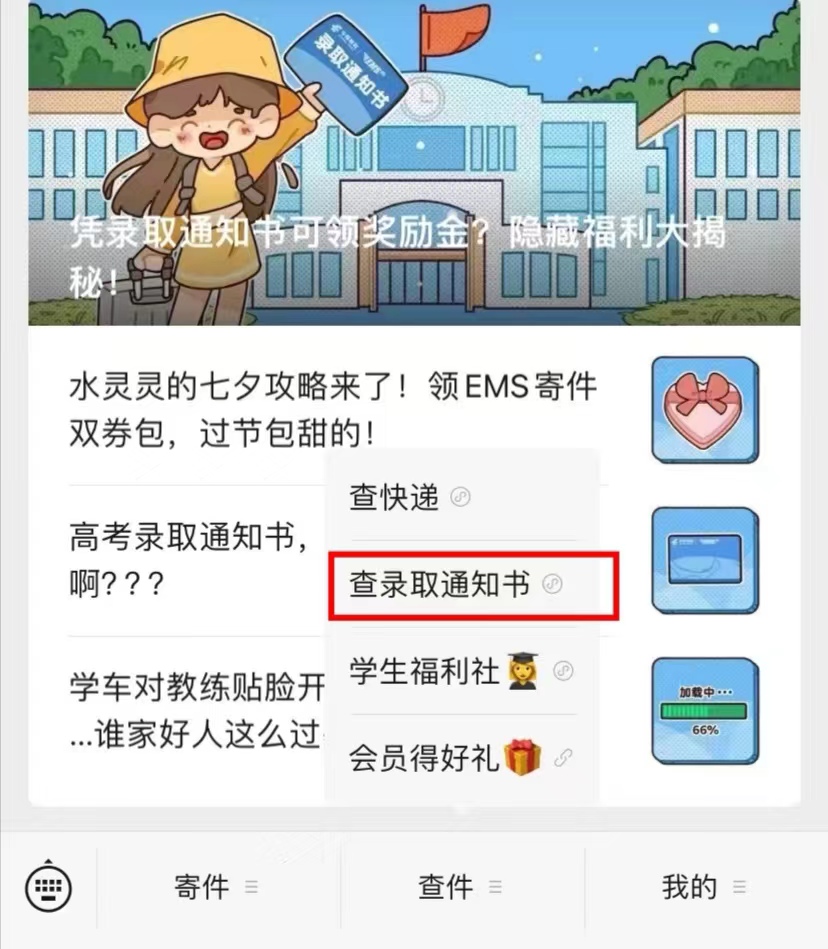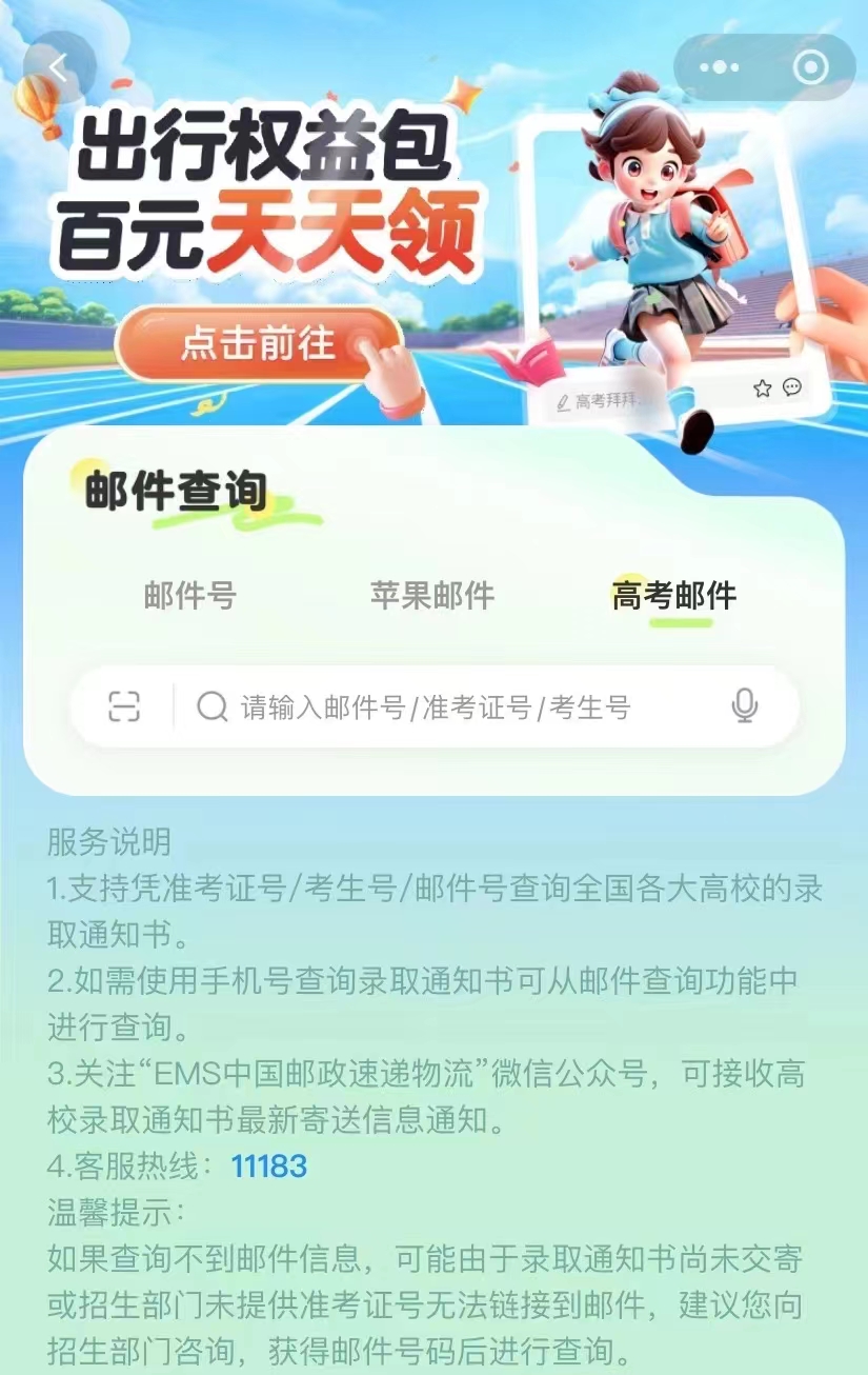 山东城市建设职业学院2024级新生录取通知书已于2024年8月9日乘坐EMS专列陆续启程,请通过下述操作查询录取通知书信息,同时近期保持电话畅通!