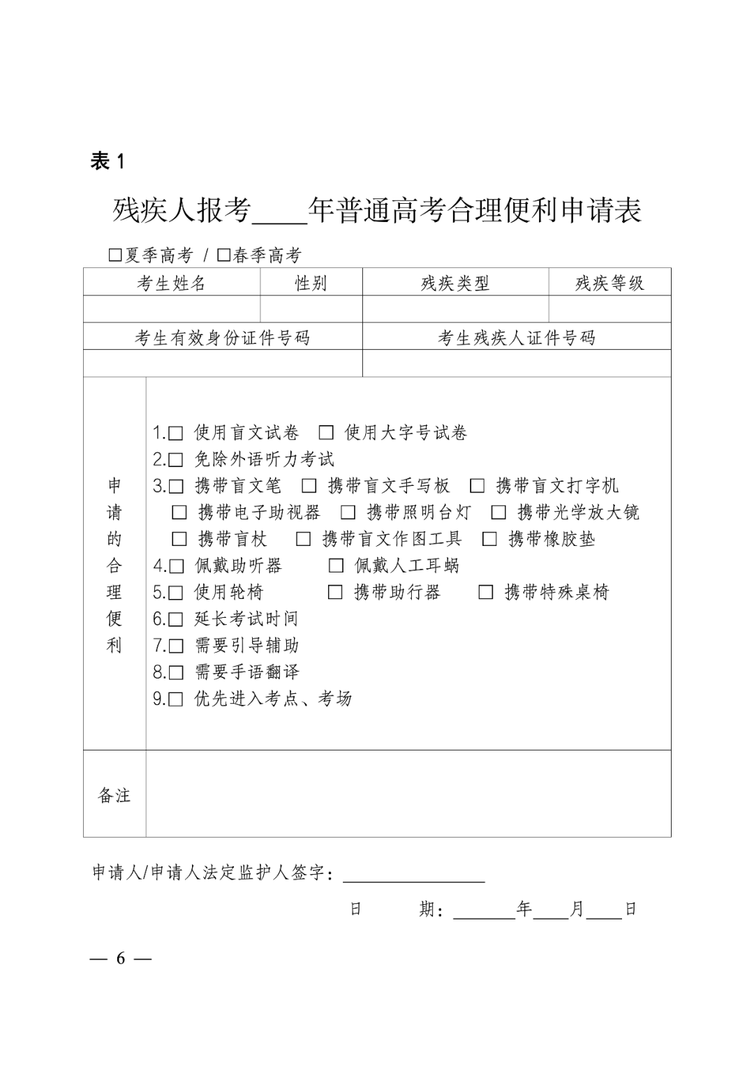 申请提供合理便利的考生应下载并按要求填写《残疾人报考普通高考合理便利申请表》(以下简称《合理便利申请表》),并上传提交本人《合理便利申请表》、本人第二代及以上《中华人民共和国残疾人证》等证明材料。