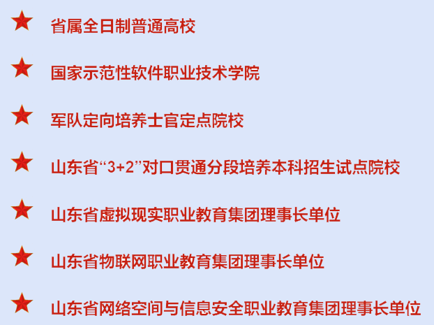 山东信息职业技术学院是山东省人民政府批准设立、教育部备案的省属公办全日制高等职业院校,隶属于山东省工业和信息化厅,是山东省创立最早、专业最全、规模最大的电子信息类高职院校。学校是教育部批准的“国家示范性软件职业技术学院”首批建设单位,部队军士人才培养定点院校,山东省“3+2”对口贯通分段培养本科招生试点院校,获批教育部职业院校数字校园首批建设单位、山东省智慧教育示范院校首批建设单位和首批山东省红色文化传承示范校。荣获“全国信息产业系统先进集体”“山东省职业教育先进集体”“山东省德育工作优秀高校”“山东省绿色学校”“潍坊市文明校园”等荣誉称号。