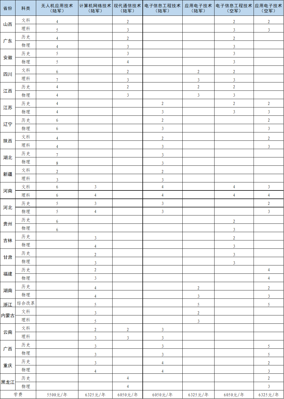 ※广大考生和家长注意:定向培养军士报名、体检、政考和投档录取都不需要缴纳任何费用,要警惕社会上不法分子和培训机构,利用招生办公室和兵役机关名义收取费用。