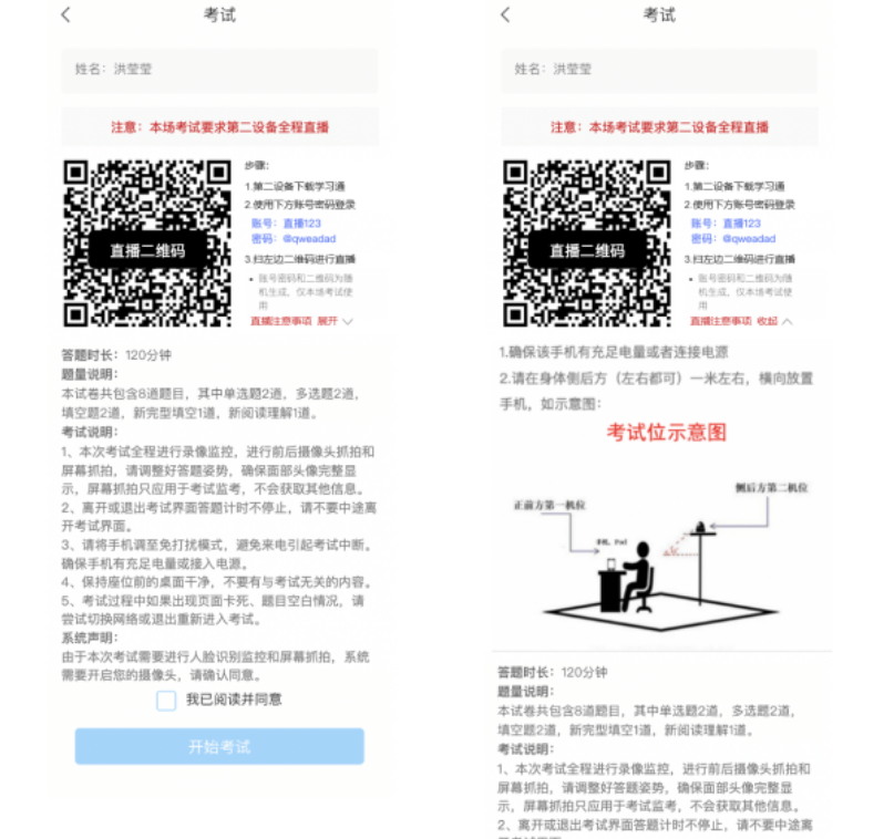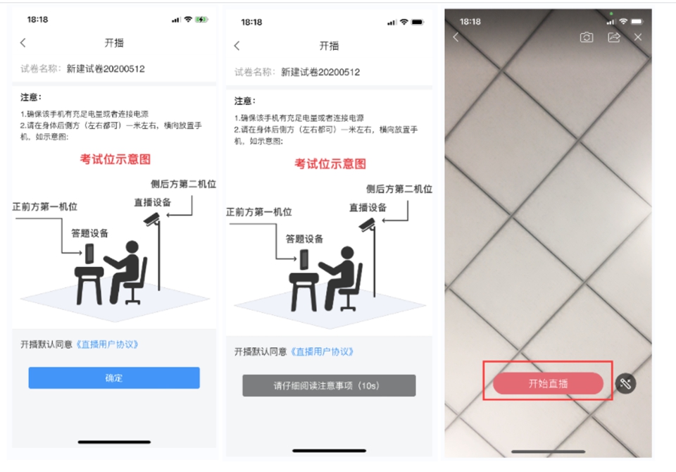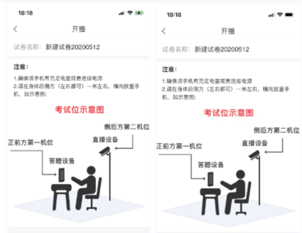 注意,考场内除双机位以外,不允许开启其他监控设备。