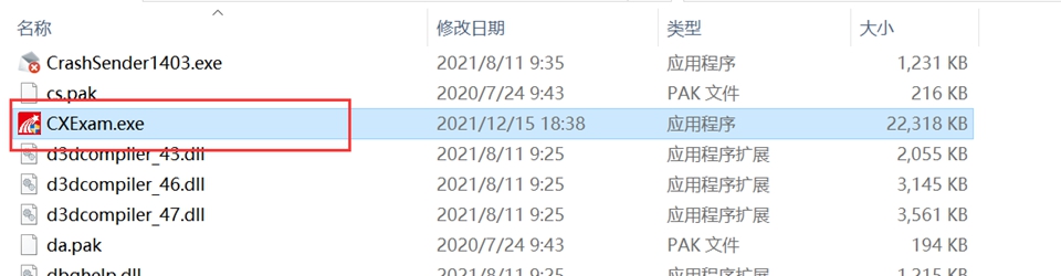 (2)解压缩后打开客户端考试文件夹,双击文件夹中的:CXExam.exe文件