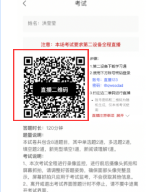 直播二维码以及直播账号密码(在考试客户端电脑端查看)