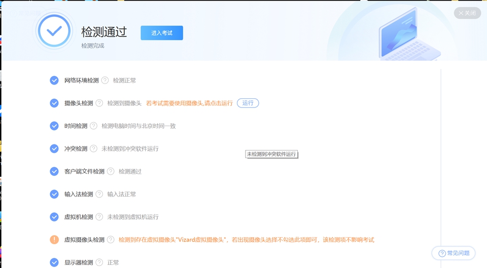 红色提示的未过检测项-----可能影响程序运行,需要通过才可进入考试