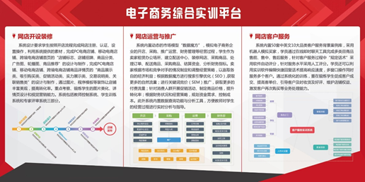 本专业与中清研等单位密切合作,共同开展专业建设,多方围绕电子商务专业知识结构、能力结构和岗位群能力的要求,共同开发了专业核心课程,创建了基于工作过程的校企特色课程标准,课程内容均包括理论和实践两大部分,形成了专业课程内容与职业标准对接、专业理论学习与企业实践的结合、专业技能培养与工作岗位对接的人才培养模式,满足了行业企业对创新型高素质电商人才的需求。