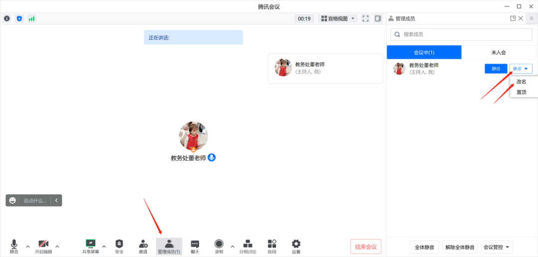如已进入腾讯会议会场,改名方式如下: