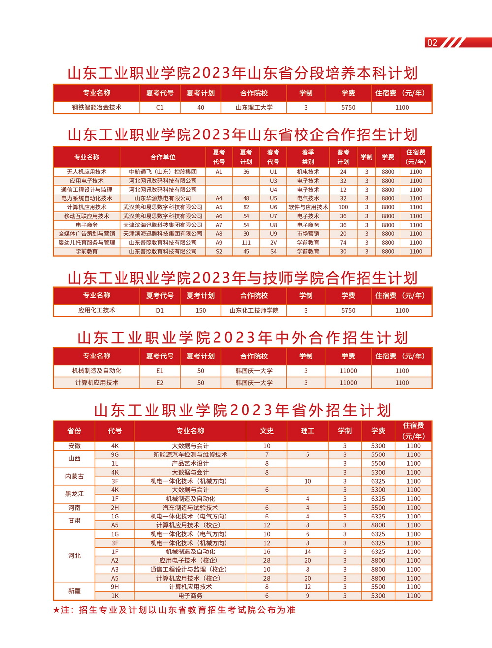 山东工业职业学院2023年大专招生简章