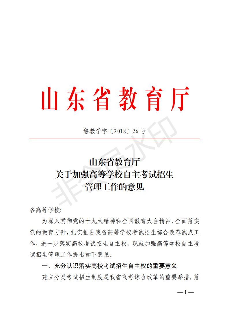 山东省教育厅关于加强高等学校自主考试招生管理工作的意见