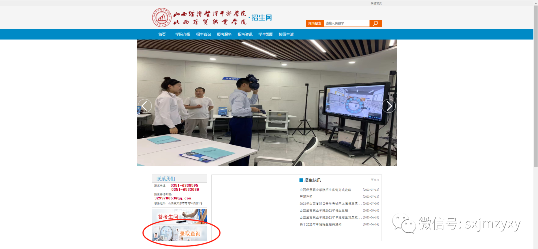 方法一:登录学院官网“https://www.sxemc.edu.cn/”点击“招生就业”下的“招生工作”,进入招生工作网页后,点击左侧“录取查询”进入山西经贸职业学院录取查询系统输入考生号和身份证号即可查询。