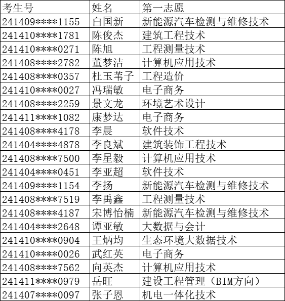 截止2024年4月19日14:30,以下学生仍未按照《山西水利职业技术学院2024年单独招生第一志愿预录取结果查询及缴费公告》要求完成缴费或办理缓缴学费手续,现按照考生自动放弃第一志愿预录取处理,请考生知悉。名单公示如下:
