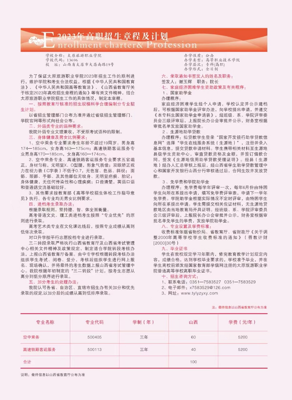 2023年太原旅游职业学院招生简章