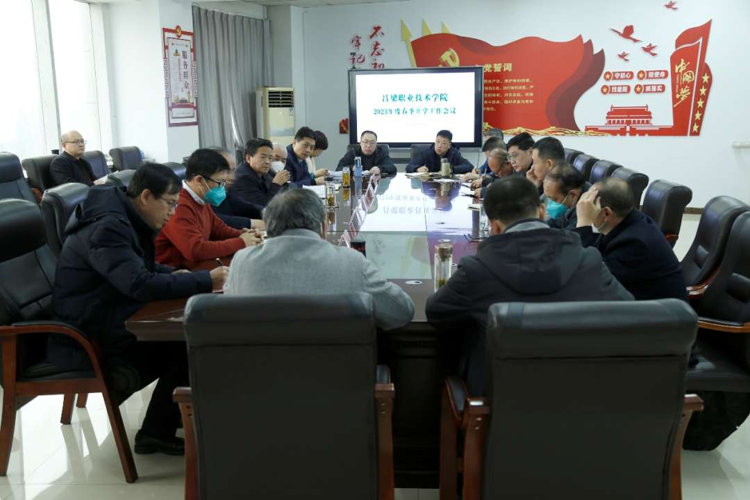 2月11日上午,我院在行政楼三层会议室召开2023年度春季开学工作会议。党委书记张苏勤、院长孙永富、党委副书记杜茂林、副院长郭海渊、院长助理马中华等领导出席会议,各部门负责人、各系部主任、各支部书记参加会议。