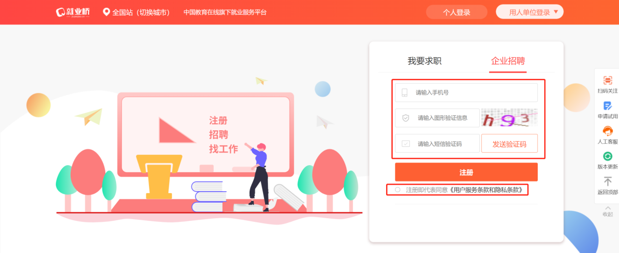 2.已注册用人单位报名:第一步:访问报名地址并登录,在【我要招人】模块中发布招聘职位信息,招聘方式需选择校园招聘;(建议电脑端使用火狐浏览器或谷歌浏览器登录)