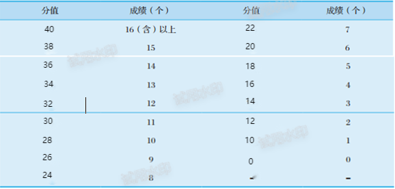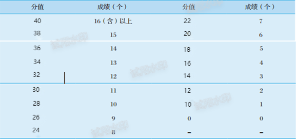 | 两个球累计: 优秀>50个 | 两个球累计: 40≤良好≤50个 | 两个球累计: 30≤及格<40个 | 两个球累计: 不及格<30个 |