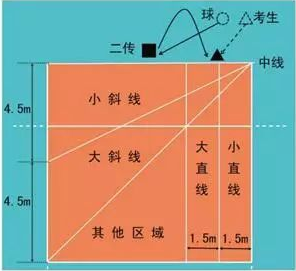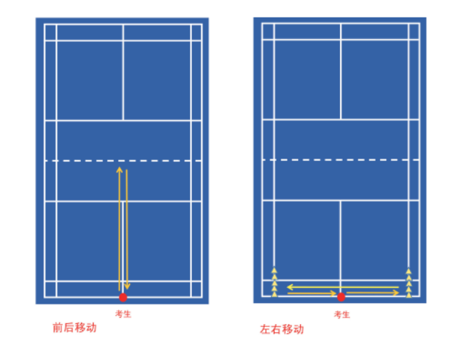 评分标准:将前场两组测试中进入有效区域的球数累计相加为最终成绩