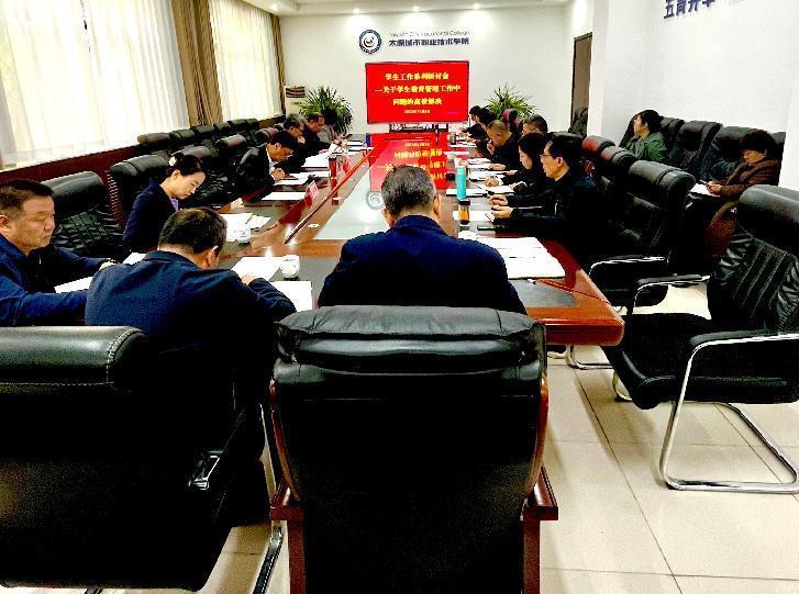 为了提高服务学生的质量,开创良好的工作局面,建设学习型、服务型、团结进取、锐意创新的工作体系,学生处于11月3日上午9:00在匠心楼一层会议室,组织召开了学生教育管理工作研讨会。参加此次研讨会的有学院领导、安稳办、后勤处、财务处、学生处负责人、各系党总支书记、分管学生领导。会议由曹红梅副院长主持。