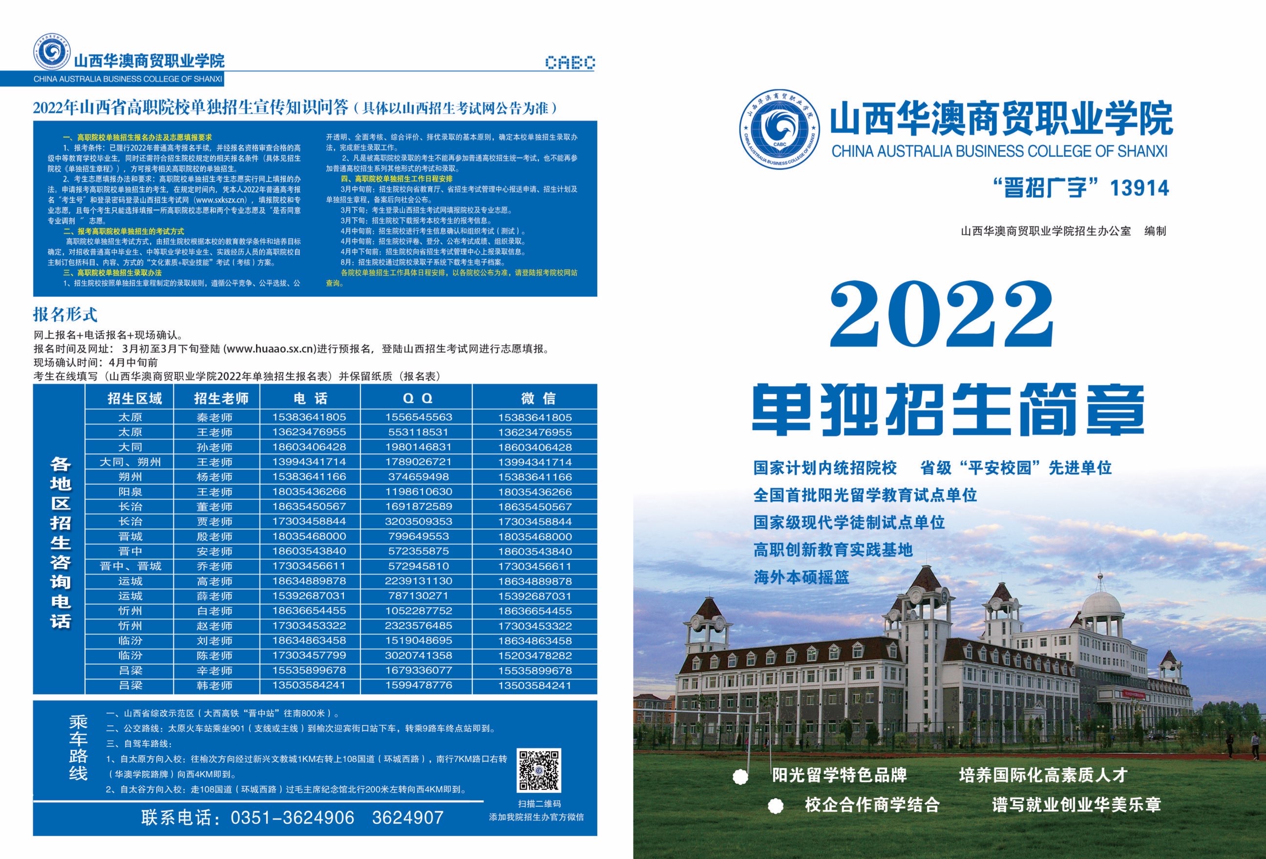 山西华澳商贸职业学院2022年单独招生简章