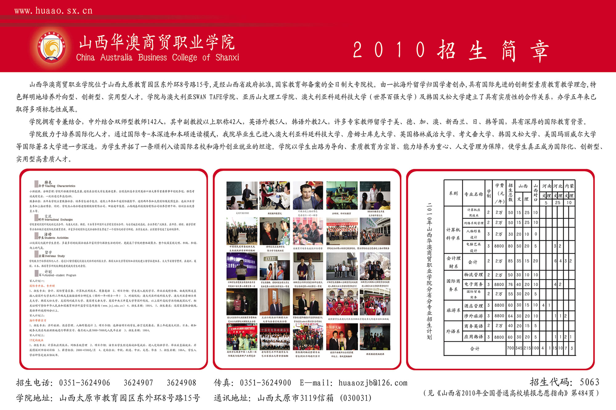 山西华澳商贸职业学院2010招生简章