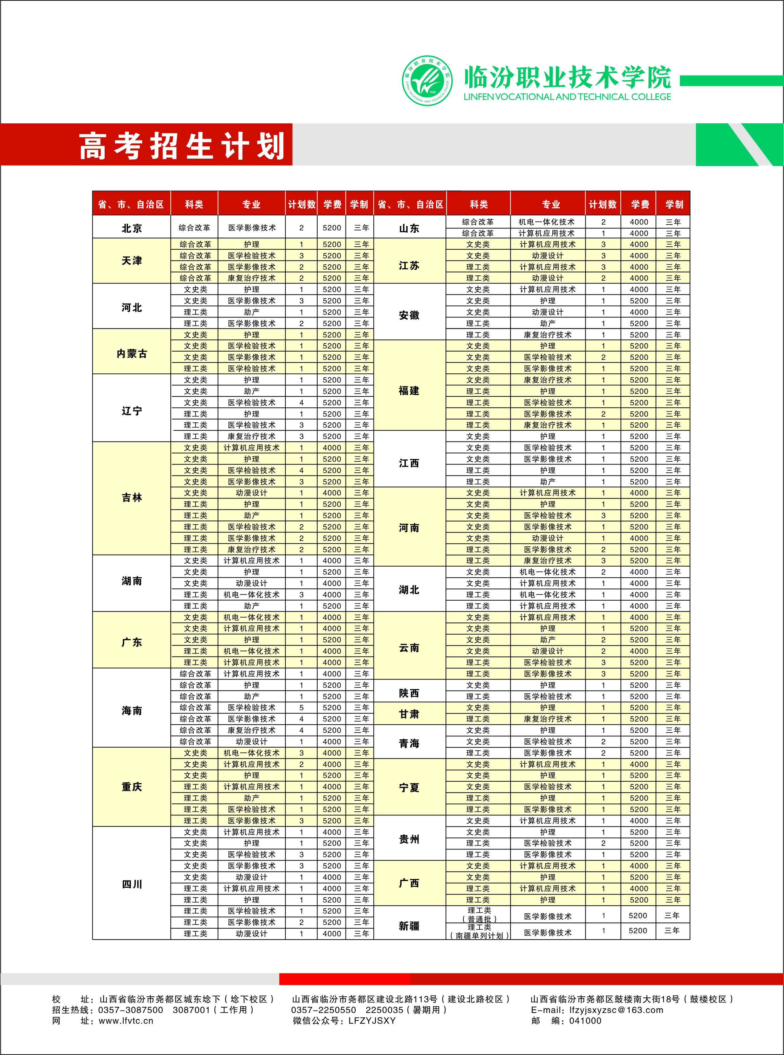 2024年山西省普通高考外省计划表