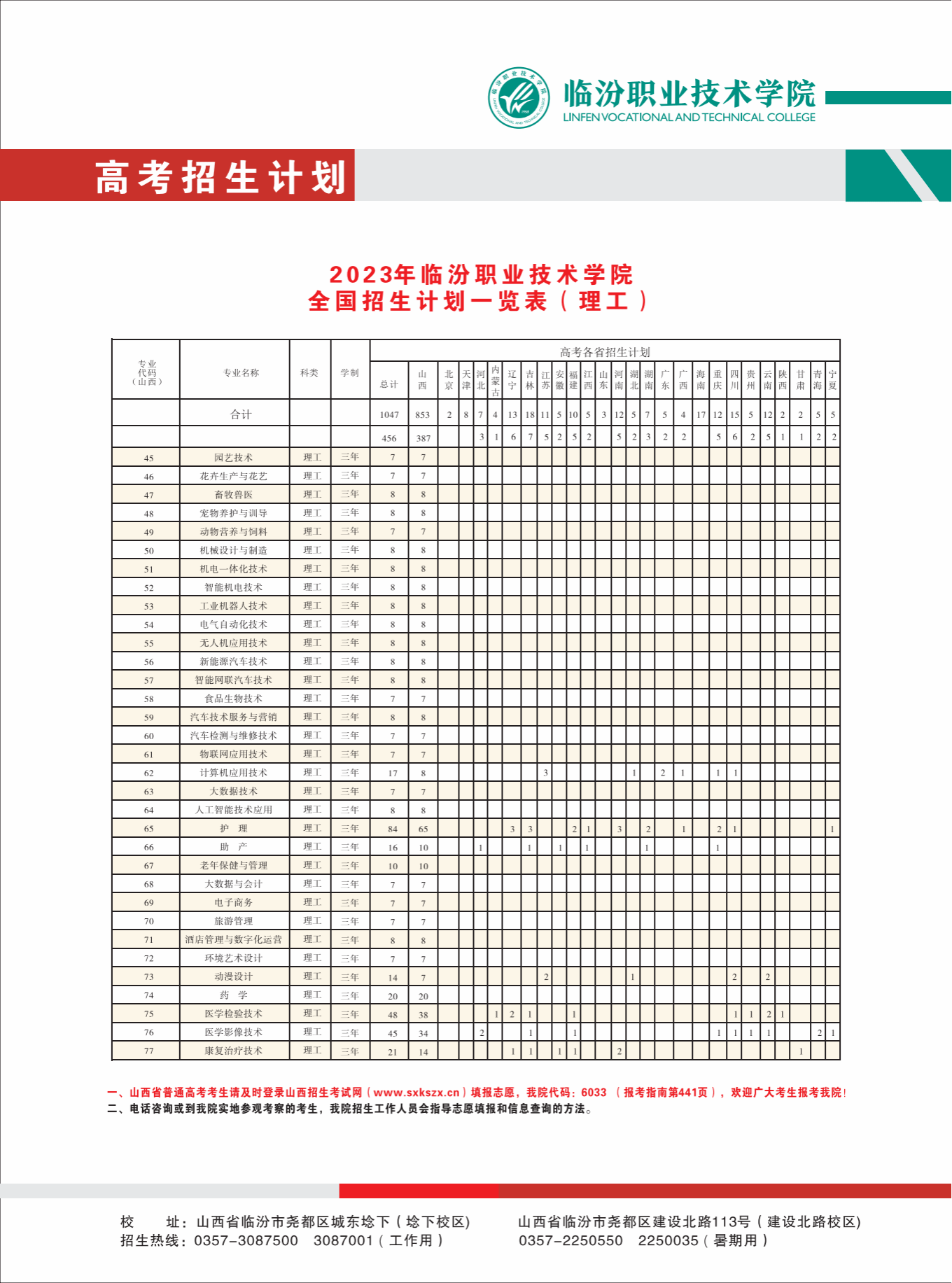 2023年临汾职业技术学院普通高考招生计划(JPG版)