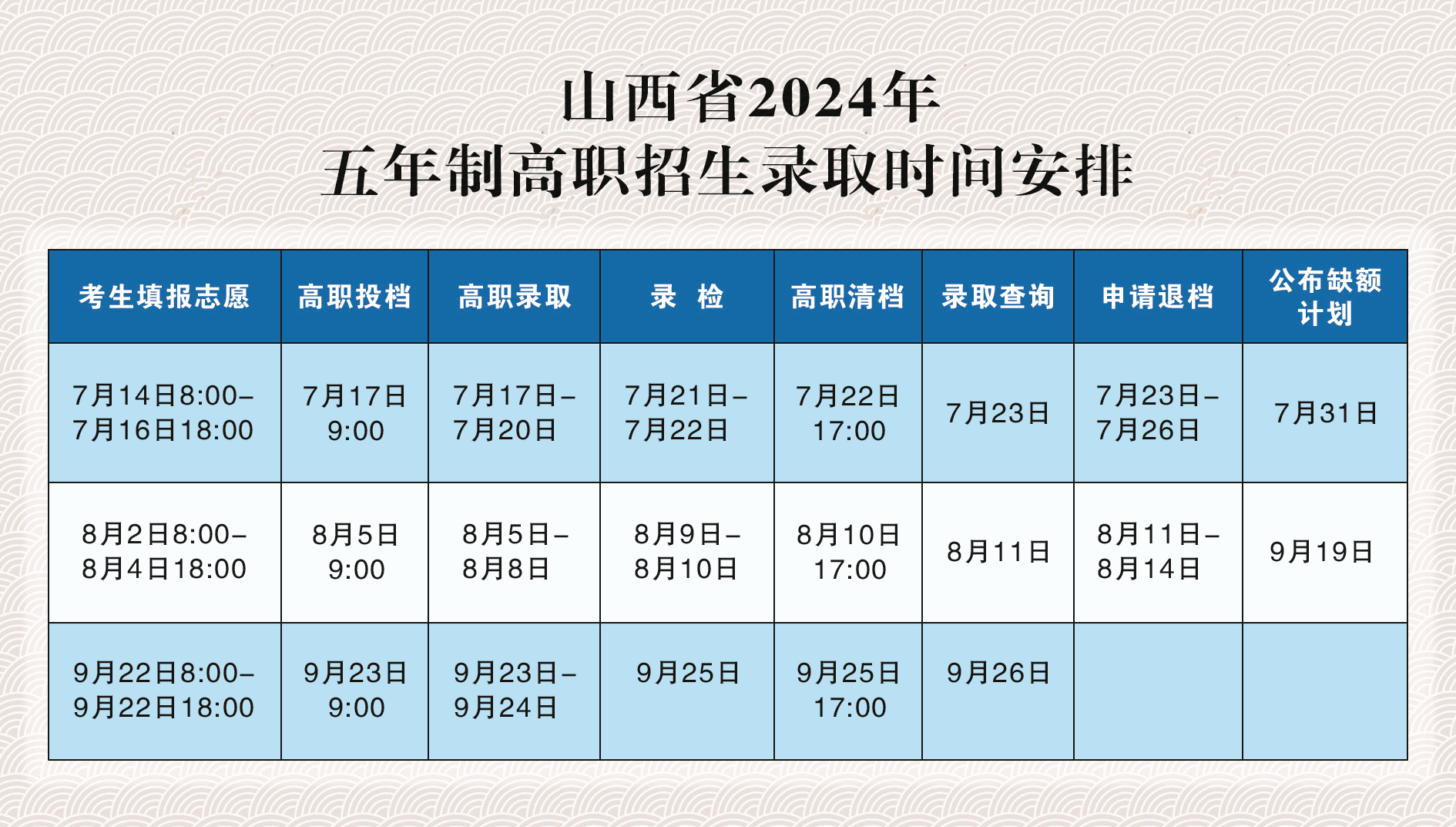 一、考生报考我校五年制高职须在山西招生考试网“中考考生网上服务平台”填报志愿。我校五年制高职招收对象必须是参加2024年中考的初中毕业生,不得免试入学。