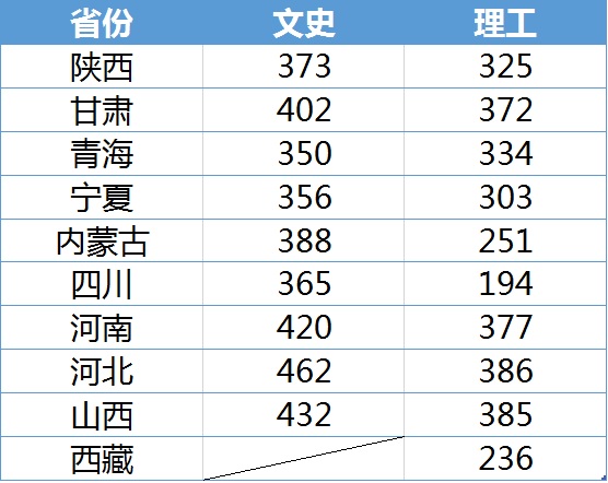 2019年我院各省市录取最低分数线