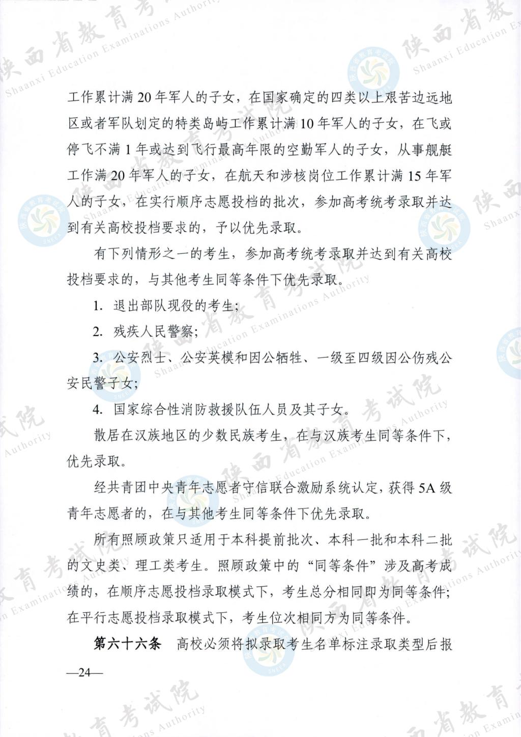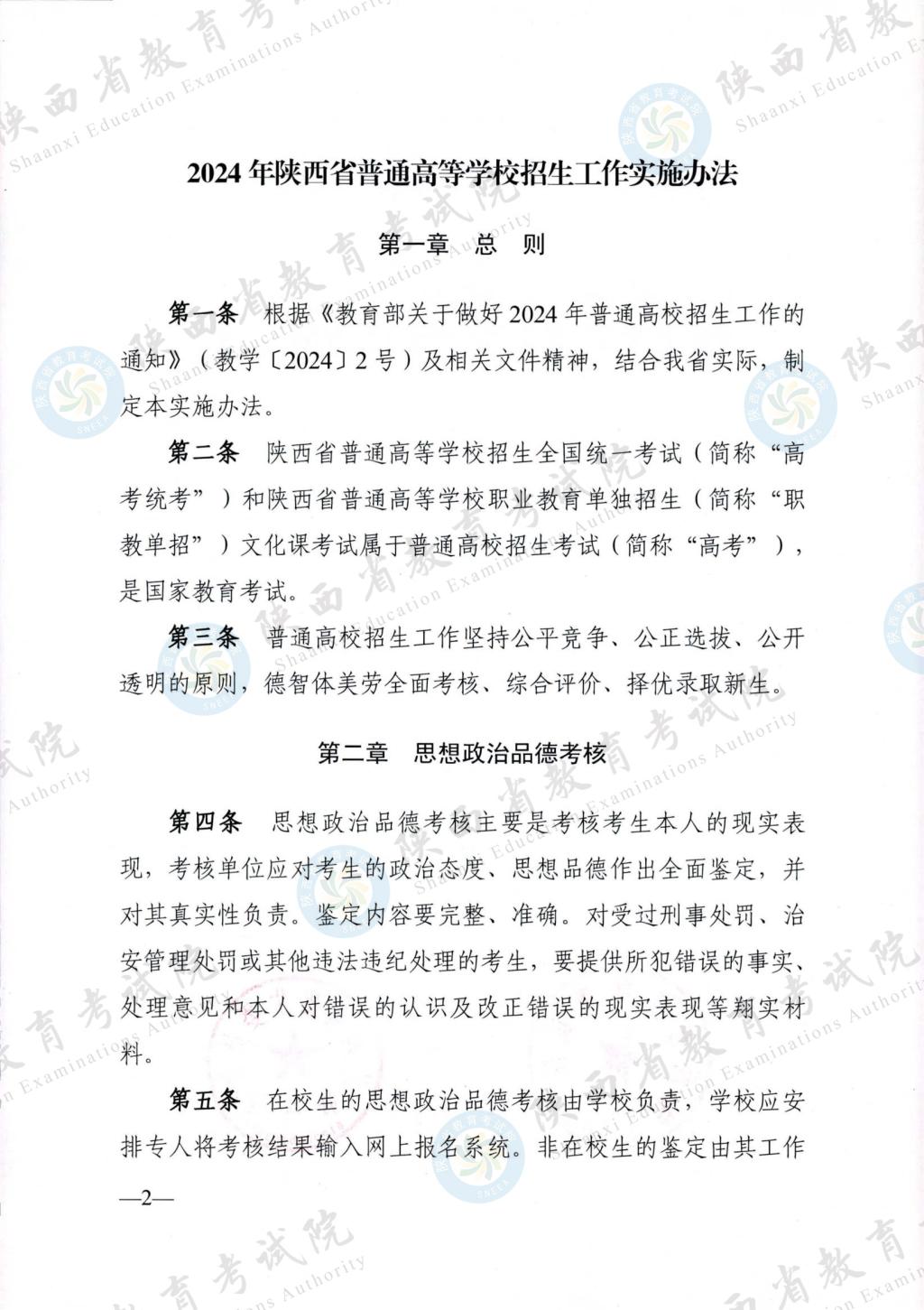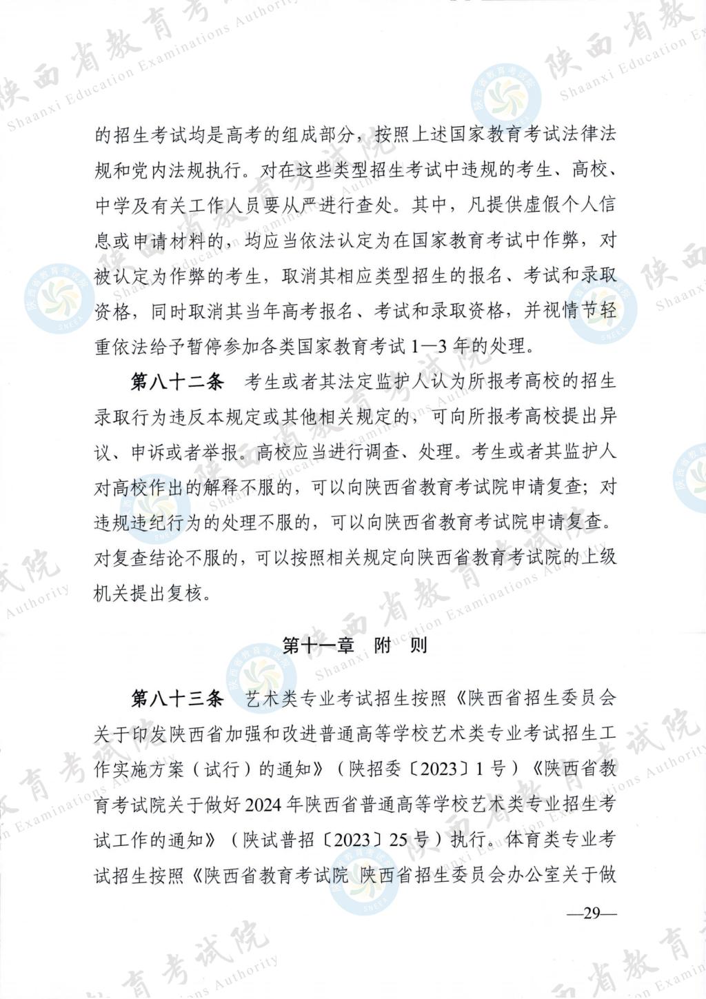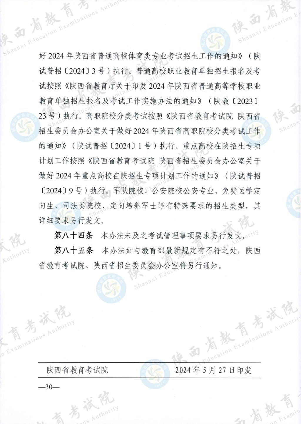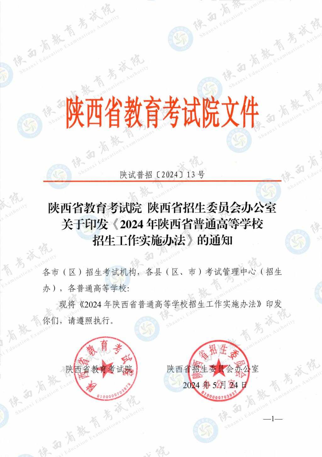 陕西省教育考试院 陕西省招生委员会办公室关于印发《2024年陕西省普通高等学校招生工作实施办法》的通知​
