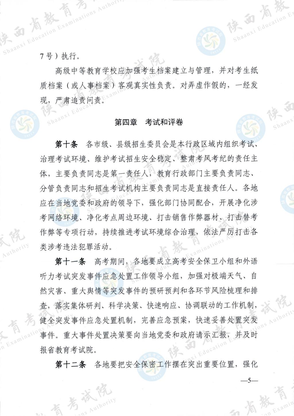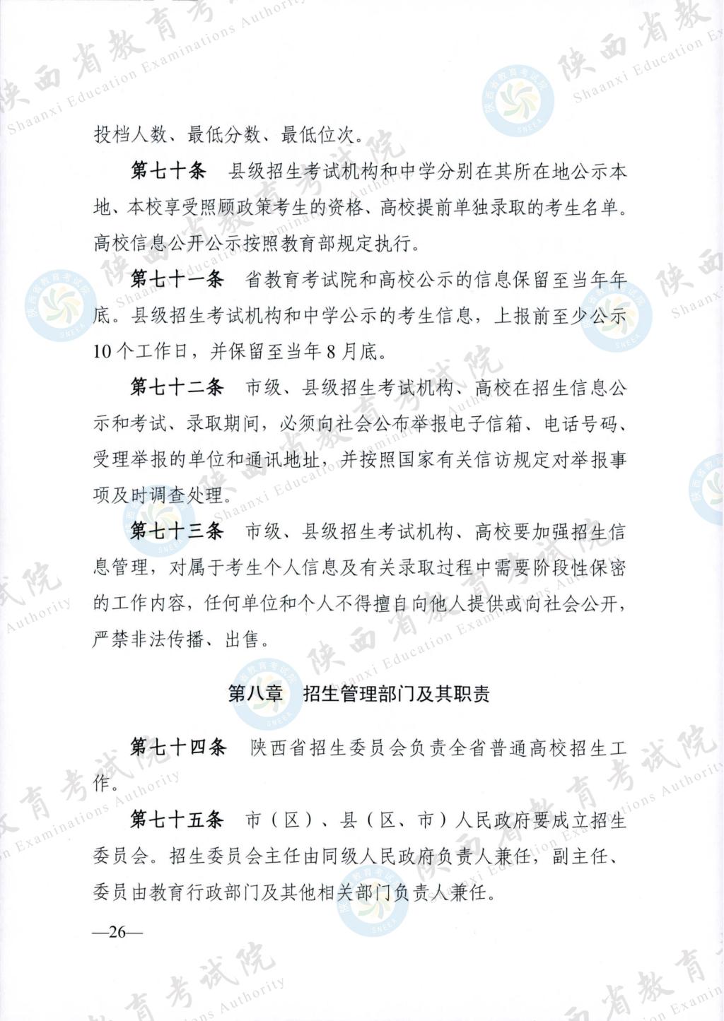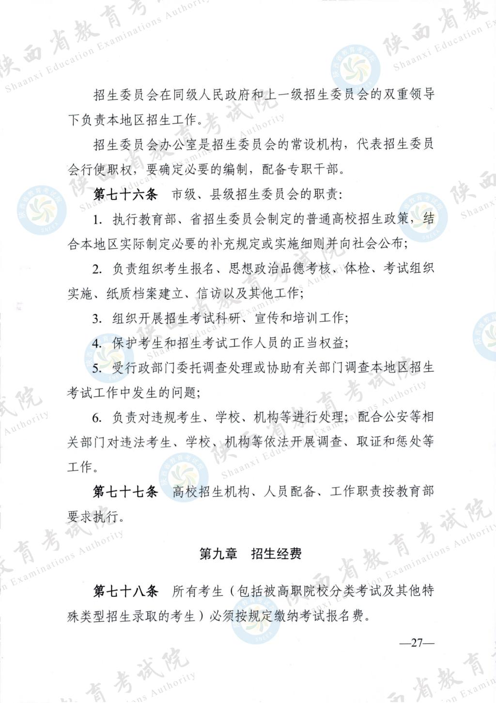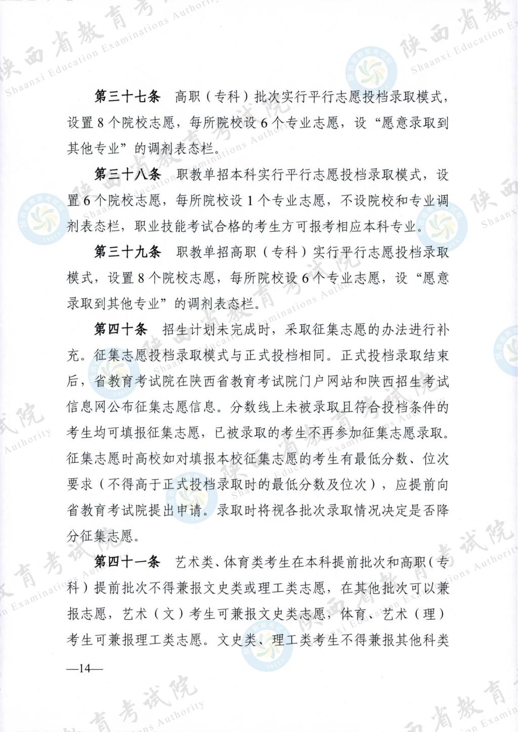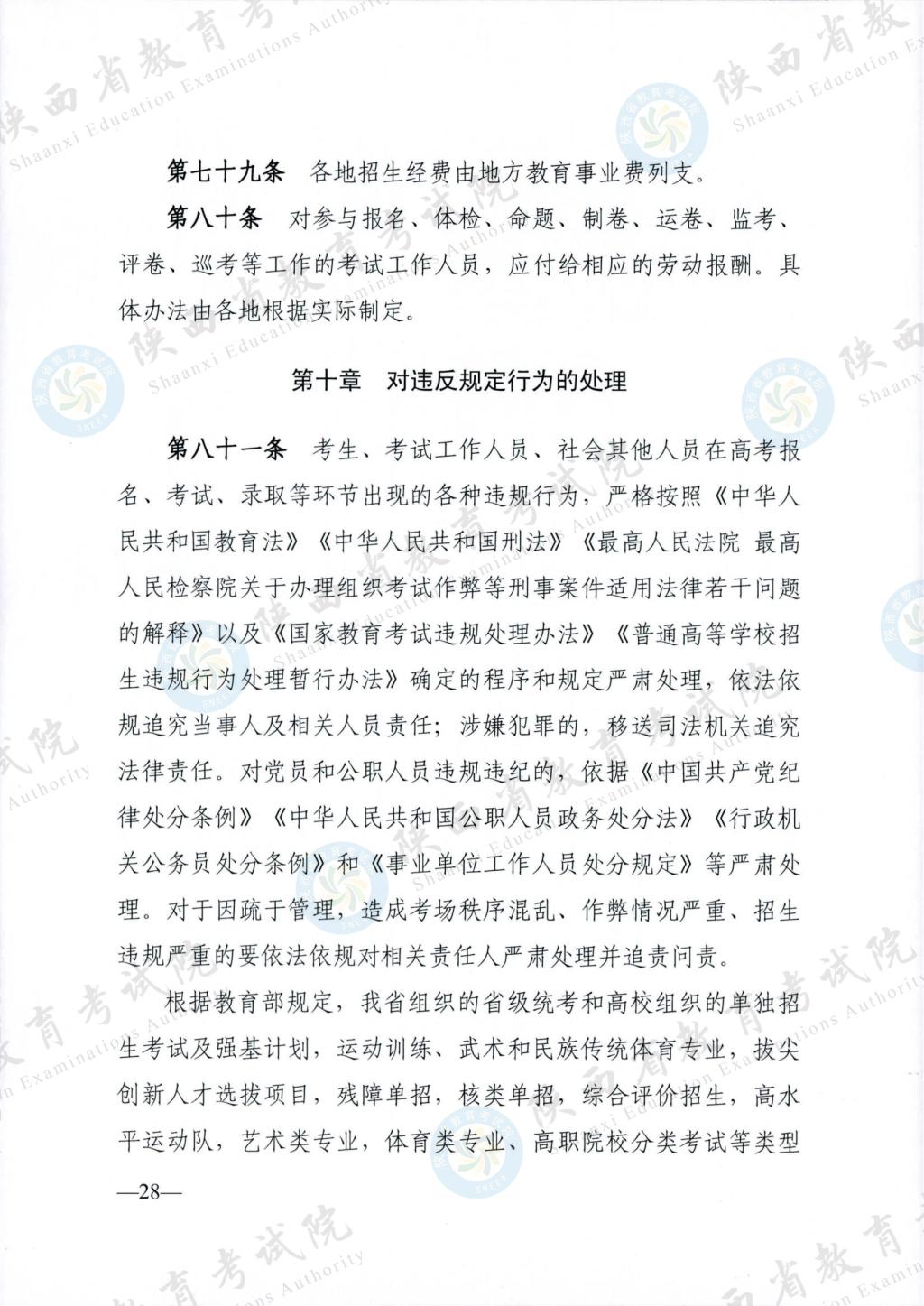 陕西省教育考试院 陕西省招生委员会办公室关于印发《2024年陕西省普通高等学校招生工作实施办法》的通知​