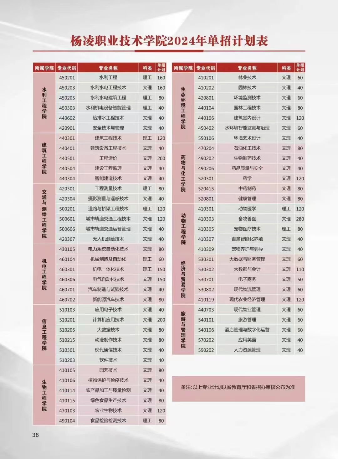 杨凌职业技术学院2024年单招简章