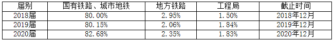 近年来毕业生就业(铁路及相关行业)情况一览表