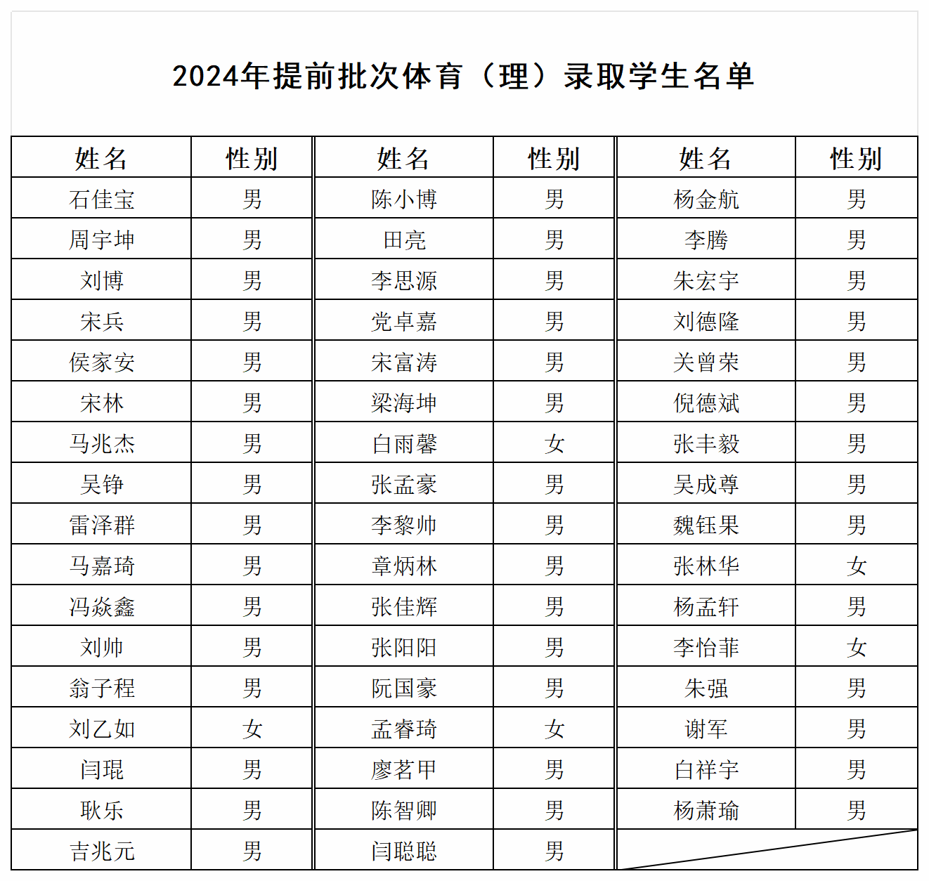咸阳职业技术学院2024年提前批次体育(理)录取学生名单