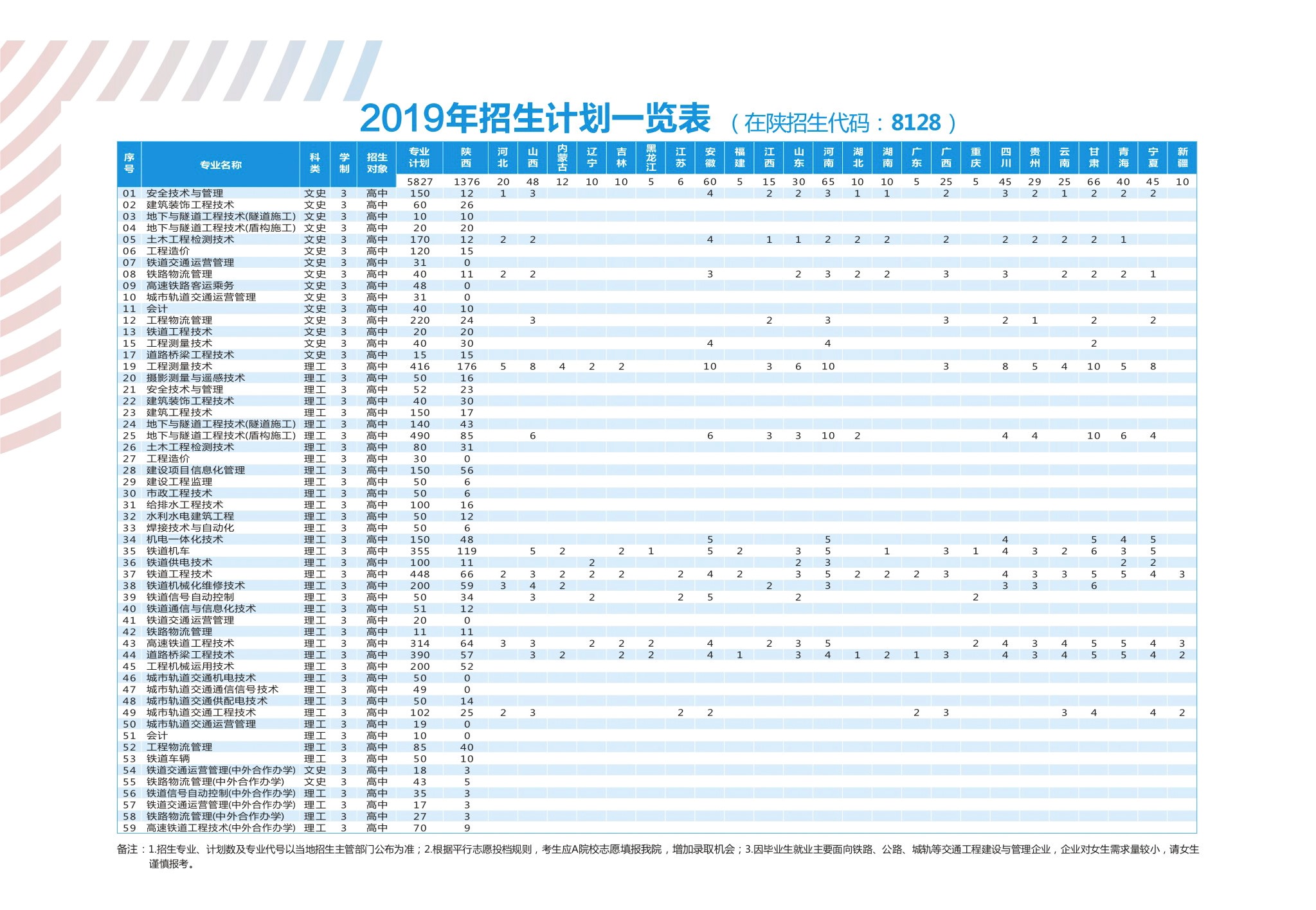 2019年招生计划一览表(普通专业在陕招生代码:8128,中外合作办学专业招生代码:9359)