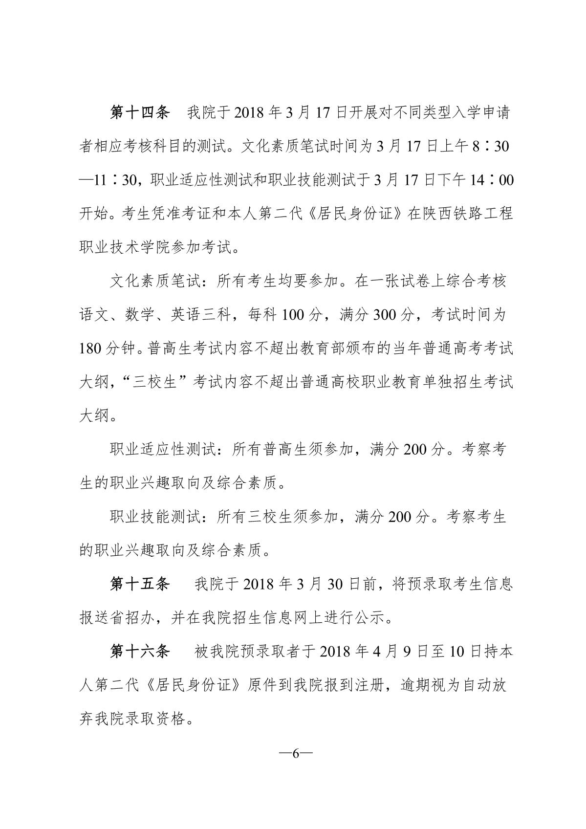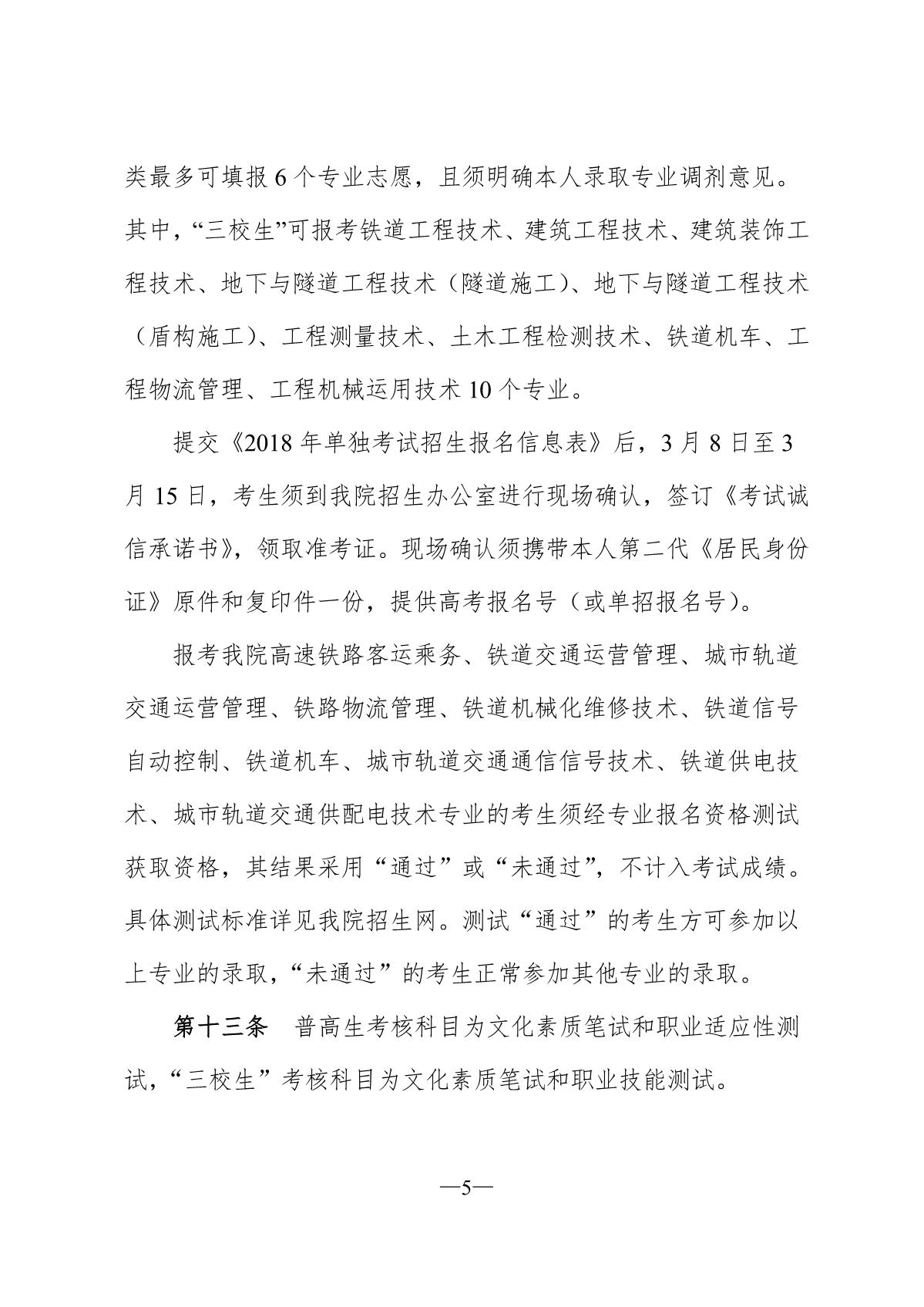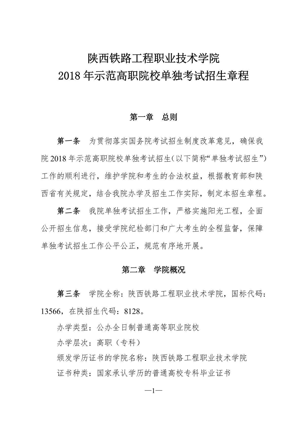 陕铁院2018年示范高职院校单独考试招生章程