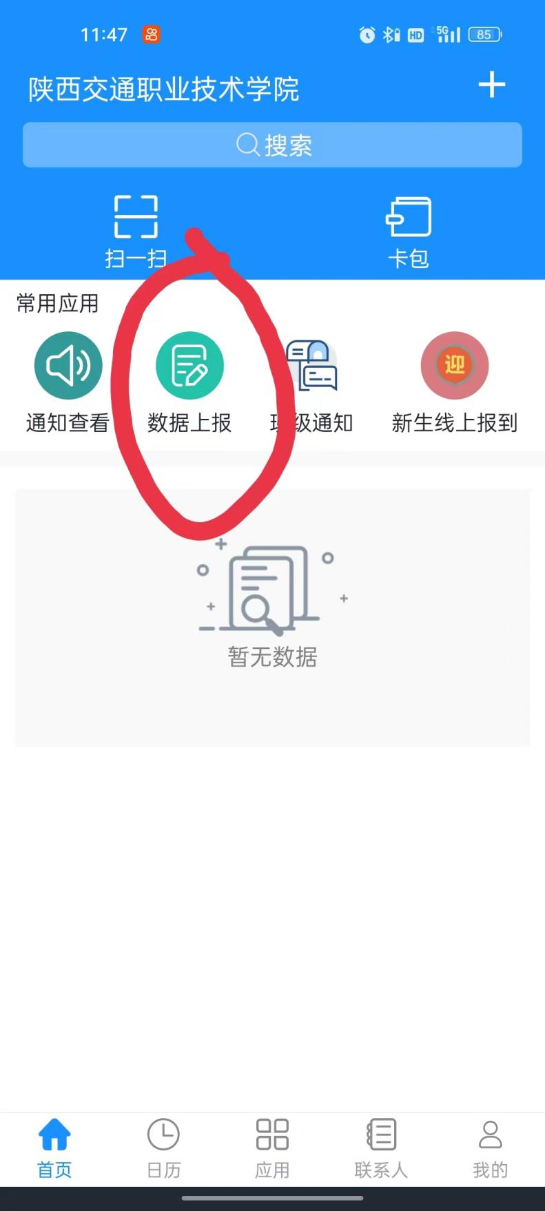 第三步:点击APP系统“首页”或“应用”界面中“数据上报”,选择要填写的任务,点击“填写”。完成每天的疫情填报任务,在来校前要坚持每天填报。