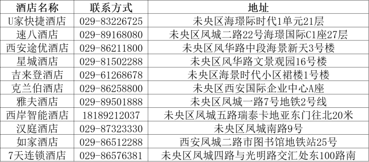 3.根据考试时间可免费延迟退房至当天下午。即日起酒店前台可接受预订,房源有限,订满为止。订房电话:029-86405772、029-86405489转111。预祝各位考生考试顺利!