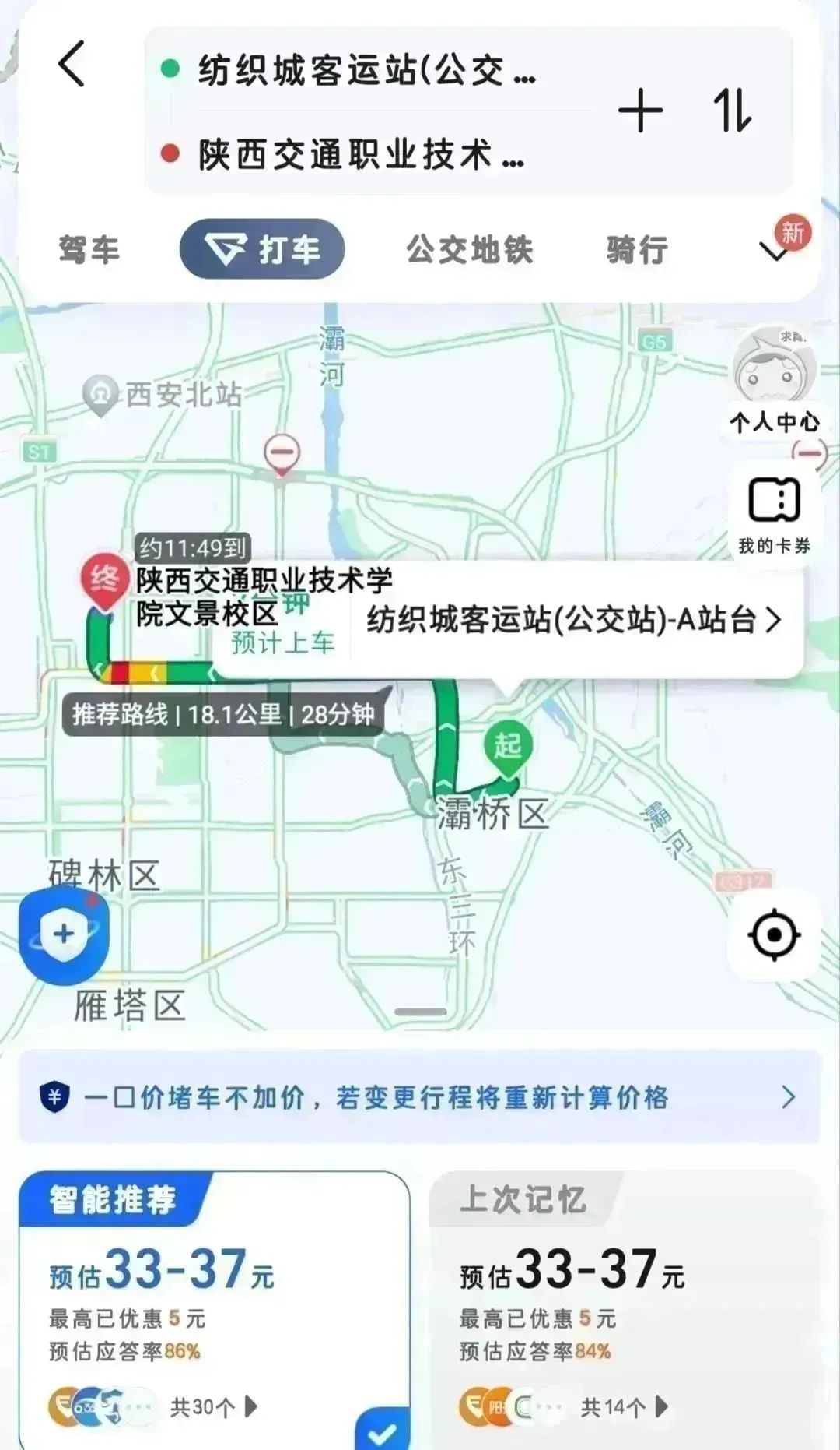 全程约28 分钟。费用约37元,全程 18.1 公里。建议提前规划、避免高峰期拥堵。