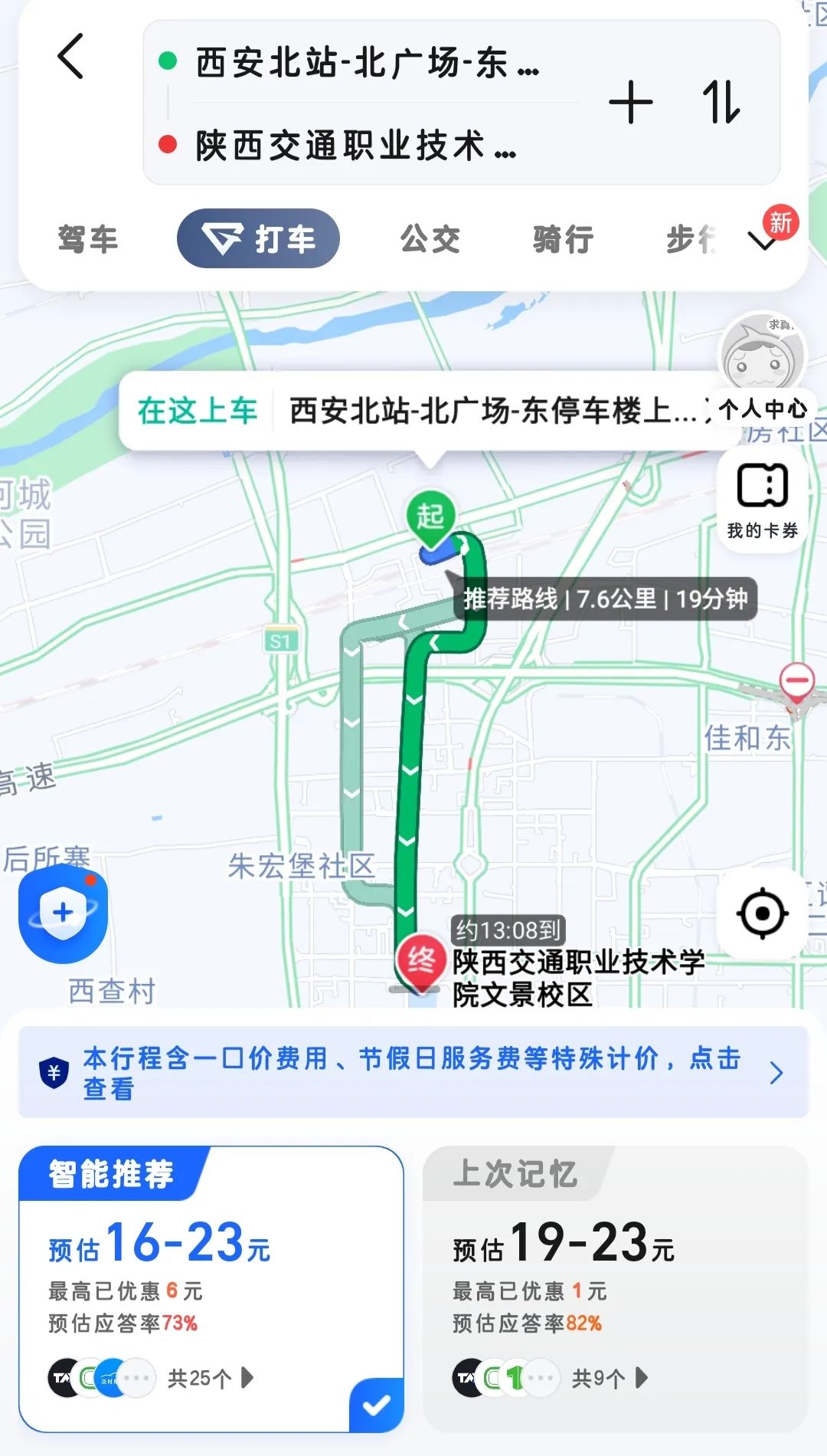 全程约19 分钟。费用约25元,全程7.6公里。建议提前规划、避免高峰期拥堵。