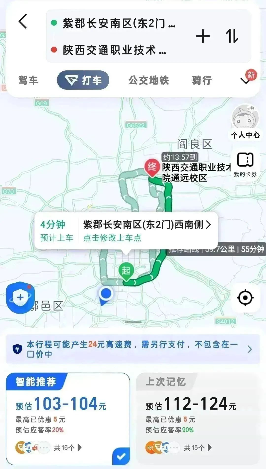 全程约24分钟。费用约57元。建议提前规划、避免高峰期拥堵。