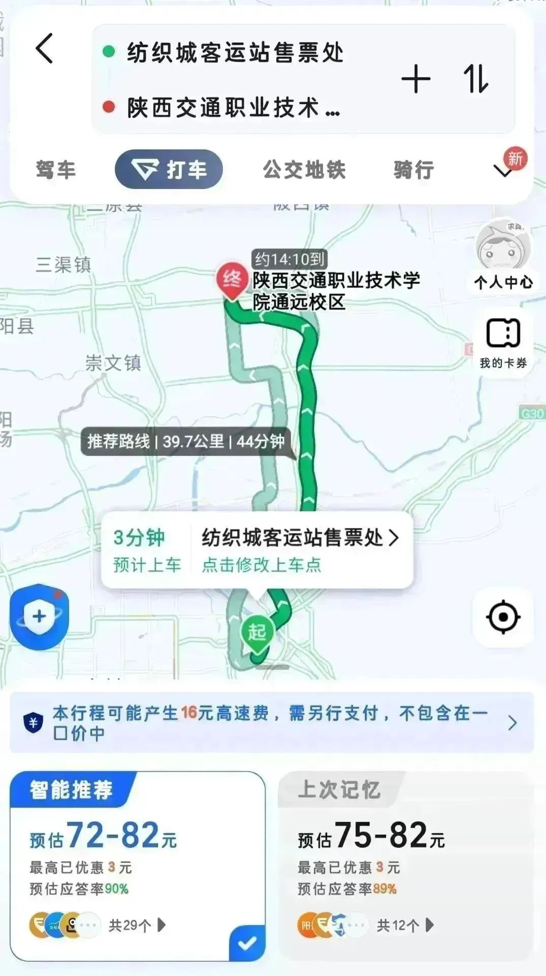 全程约44分钟。费用约75元,全程 39.1 公里。建议提前规划、避免高峰期拥堵。