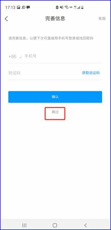 完善信息部分直接点击跳过,可以跳过之后重置自己的登录密码,新密码必须不用绑定手机号。包含字母、数字或者符号最少两种类型。