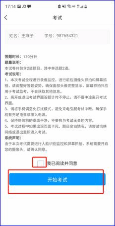 2.拍摄自己的对比照片,用来人脸识别比对。识别完成之后点击“立即开始”学习通的监考权限,点击取消则无法正常答卷。