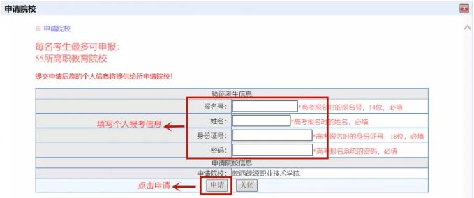符合条件的考生必须于2021年3月4日9:00~3月10日17:00之间,登录高职教育分类考试招生网管理平台(https://www.sneea.edu.cn)进行院校申请。
