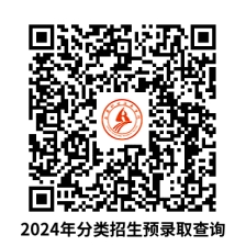 按照陕西省考试院规定,我院已上传预录取名单,各位考生可通过扫分类招生预录取查询二维码或登陆学院官网点击分类考试成绩查询飘窗(https://www.akvtc.cn)进行查询,查询登陆方式输入报名号即可。凡被我院录取的考生于2024年4月8日8:00后至4月12日17:00前,携带本人第二代身份证原件,在安康职业技术学院或我院公布的县区报到注册服务点办理手续。