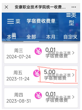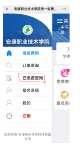 (1)登录“统一收费平台”后,点击左上角“菜单”栏,点击“已缴费查询”