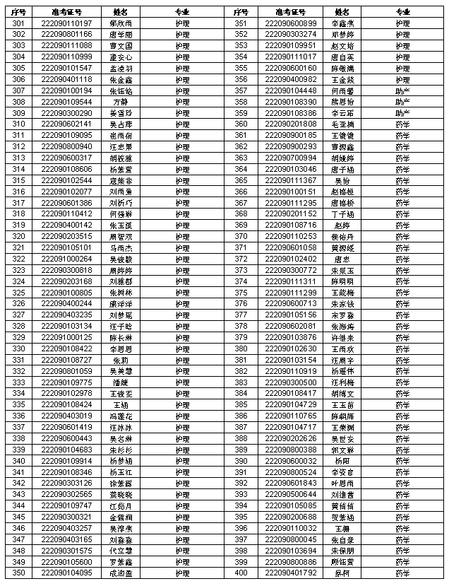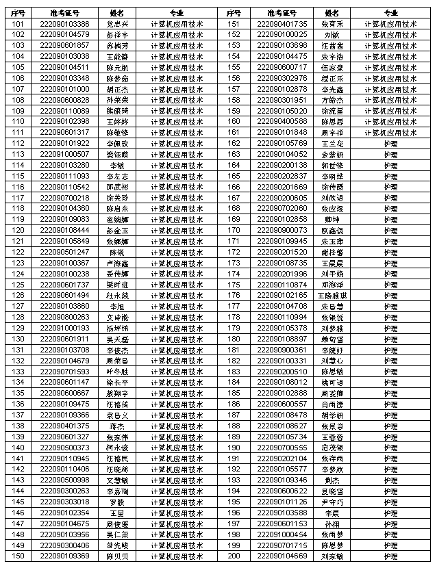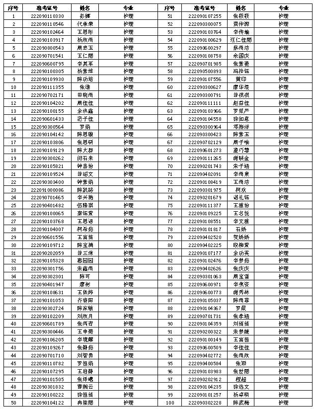 根据我院五年一贯制、三二分段制五年制高职录取原则,现将预录取考生名单公布如下: